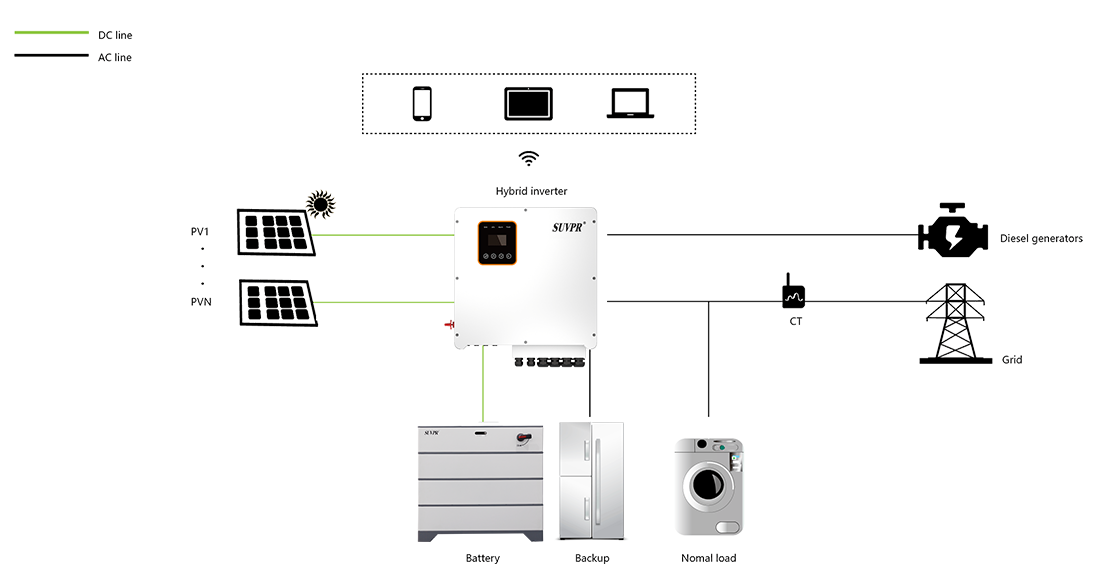 ●Works with mainstream hybrid & off-grid inverters