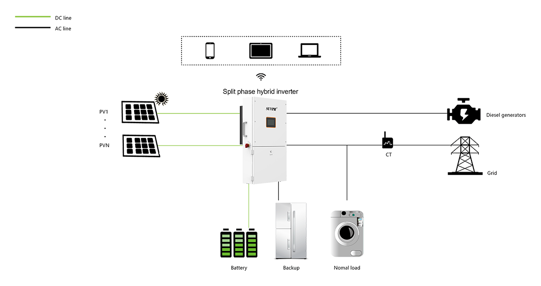 ●Bağımsız şebeke ve jeneratör girişi; dizel jeneratörlerden enerji depolamayı destekler